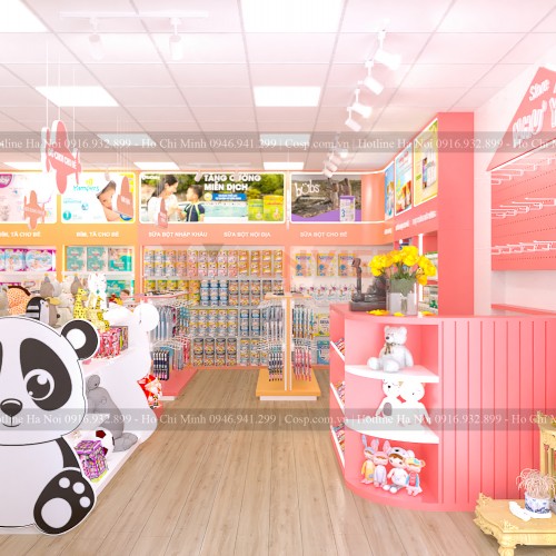 >>> Xem thêm: Thiết kế cửa hàng mẹ bé Popi Store