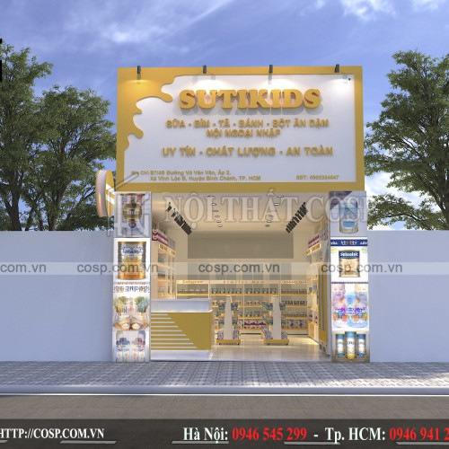 Ý tưởng thiết kế shop bỉm sữa Sutikids