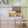 Không gian phòng bếp được lui về phía sau qua cánh cửa gỗ màu trắng. Hệ tủ bếp được thiết kế bằng gỗ MDF chống ẩm với bố trí theo hình chữ L. Mặt bếp được ốp đá hoa cương bền đẹp, dễ lau chùi. Một bộ bàn ăn nhỏ dành cho 4 người được đặt trong căn bếp ấm cúng này, giúp gia đình anh Trọng Anh cùng sum họp và thưởng thức những bữa ăn ngon.