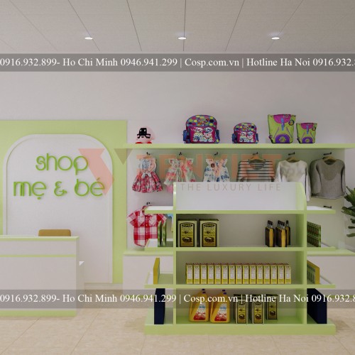 >>> Xem thêm: Thiết kế cửa hàng mẹ bé Cheri Baby