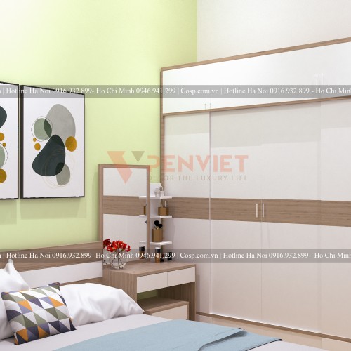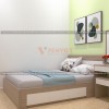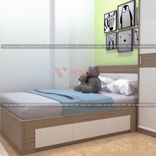 Vì căn phòng ngủ này bị hạn chế diện tích nên những sản phẩm giường kết hợp tủ phía dưới, hay tủ quần áo cánh lùa sẽ là lựa chọn tối ưu vừa giúp gia chủ cất trữ được nhiều đồ đạc trong gia đình mà không gian không hề bị bừa bộn. Những bức tranh màu sắc decor đầu giường sẽ tô điểm thêm cho không gian rất nhiều.