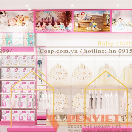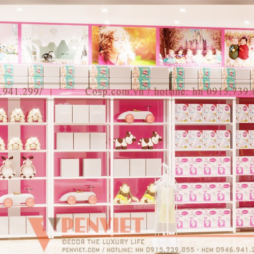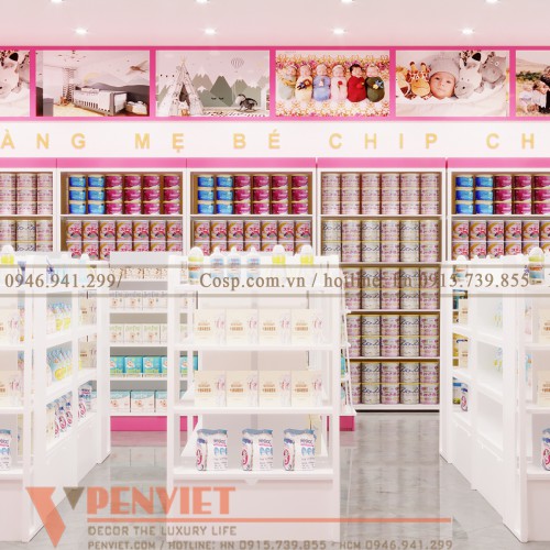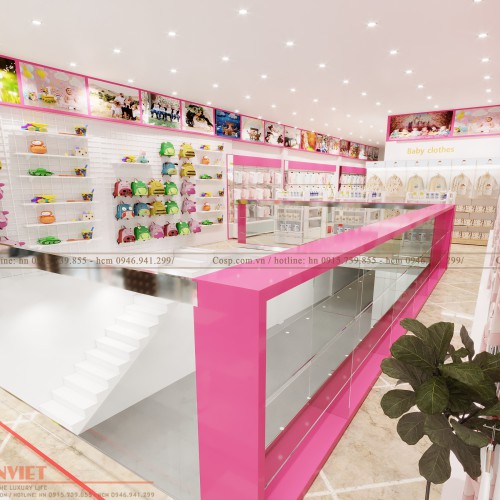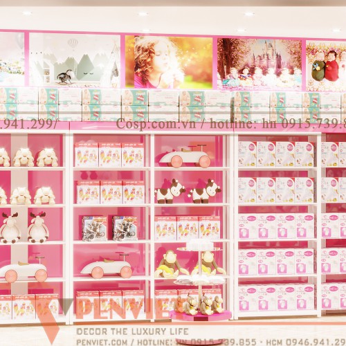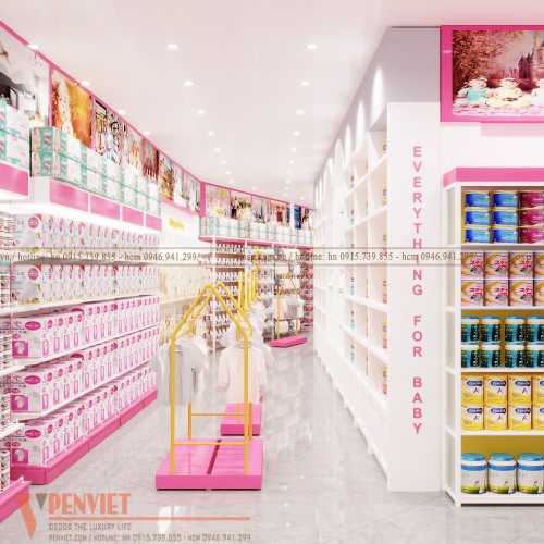 Và khi mở cửa hàng mẹ và bé những nhà kinh doanh thường có mong muốn làm sao để có thể làm nổi bật được shop của riêng họ. Và sự nổi bật, gây bắt mắt để khách hàng nhận ra đầu tiên chính là thiết kế cửa hàng theo phong cách riêng biệt. Dưới đây là một ví dụ về phương án thiết kế shop mẹ và bé hiện đại do Nội Thất PenViet thực hiện, mời các bạn tham khảo.