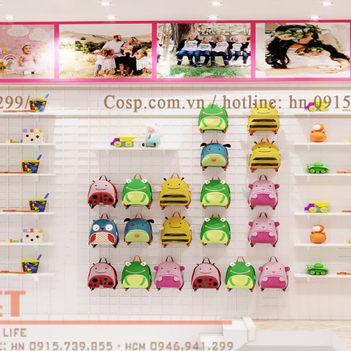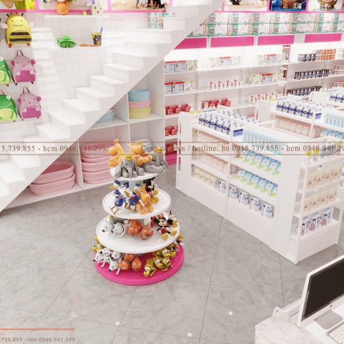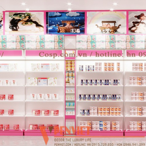 Để tạo sự đa dạng, mới mẻ trong cách bài trí những KTS của Nội Thất PenViet đã thiết kế hệ thống giá kệ phù hợp với đặc thù, kích thước của mỗi loại sản phầm vừa tận dụng hết công năng lại mang tính chuyên nghiệp cao. Với những sản phẩm có kích thước bé như núm ti, đồ chơi để tiết kiệm không gian các KTS đã thiết kế giá treo vừa đẹp mắt lại thuận tiện cho khách hàng mỗi khi mua sắm.