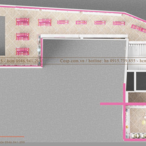 Những sản phẩm này KTS đã phân bổ ra một khu vực riêng biệt để khi khách hàng đi vào thì chỉ cần tới khu vực đã được bày bán đó mà lựa chọn thôi, không phải mất công đi tìm hay mất thời gian đi loanh quanh mãi mà không thấy được nó. Hệ thống giá kệ được thiết kế thông minh có thể trưng bày được nhiều sản phẩm mà không gian vẫn thoáng.