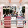 Sử dụng bóng bay và hệ thống đèn âm trần để trang trí cho cửa hàng
