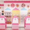 Với đối tượng khách hàng nhí, việc trang trí không gian trở nên dễ thương và bắt mắt là điều rất cần thiết. Các kệ trưng bày được thiết kế đa dạng với những kiểu dáng khác nhau cùng chi tiết trang trí dễ thương. Để tạo hình cho gấu cho các kệ bày bán sản phẩm, chúng tôi sử dụng gỗ MDF chống ẩm phủ sơn PU cắt CNC để mang tới những hình ảnh sắc nét và ngộ nghĩnh. Sự hài hòa trong các chi tiết giúp mang đến không gian sinh động, tạo sự thích thú.
