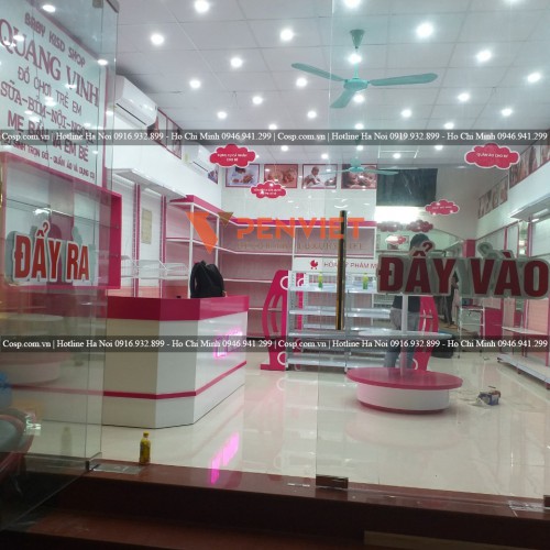 Hãy liên hệ với Nội Thất Cosp để chúng tôi giới thiệu chi tiết từng mẫu sản phâm tới quý khách hàng nhé ! Còn bây giờ hãy cùng chúng tôi xem qua mẫu thiết kế Shop mẹ và bé - Quang Vinh này nhé !