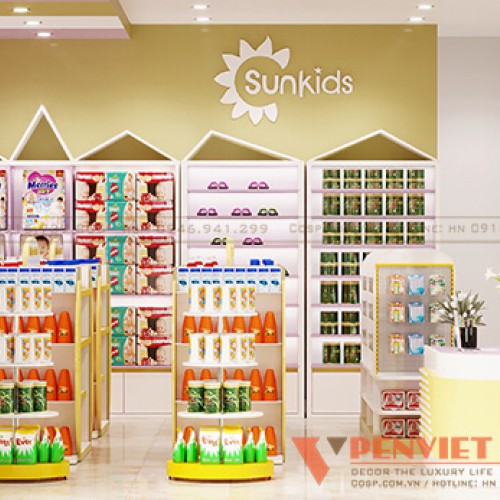 Shop mẹ và bé Sunkids được setup theo phong cách hiện đại