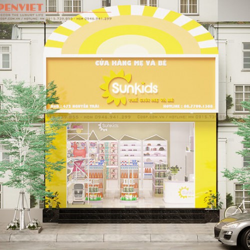 Thiết kế shop mẹ và bé Sunkids đáp ứng nhu cầu của chủ đầu tư về một không gian cửa tiệm tươi vui, nổi bật dành cho mẹ và bé, mang đến cho người tiêu dùng một địa chỉ mua sắm uy tín. Cùng khám phá những giải pháp được các kiến trúc sư Penviet sử dụng nhằm mang đến sự mới lạ, độc đáo cho cửa tiệm này nhé!