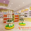 Cuối cửa hàng, chúng tôi bố trí kệ hàng bằng gỗ MDF phủ Melamine bày bán nhu yếu phẩm giúp khách hàng có nhiều lực chọn khi đến với shop mẹ và bé Sunkids.