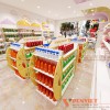 Khu vực bày bán sữa cũng được mở rộng nhờ việc sắp xếp các kệ trưng bày bằng gỗ MDF phủ Melamine ốp tường gỗ MDF kết hợp sắt sơn tĩnh điện trang trí bắt mắt.