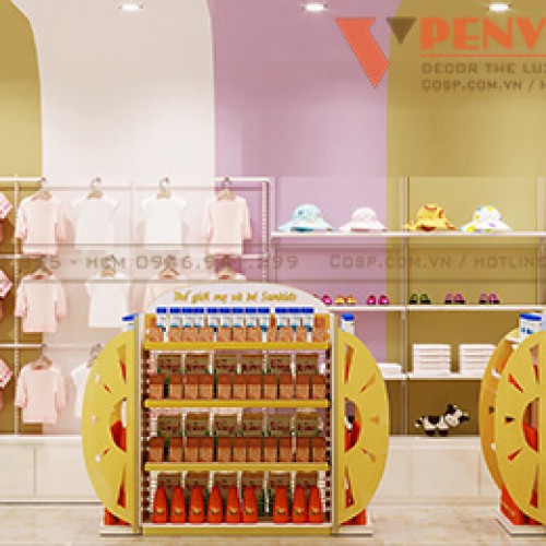 Bố trí mặt bằng nội thất tại shop mẹ và bé Sunkids