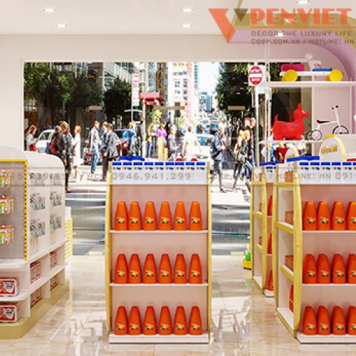 Giải pháp tối ưu không gian được Penviet lựa chọn là bố trí quầy kệ một cách khoa học, điều này vừa giúp mở rộng khu vực trưng bày sản phẩm, vừa tạo sự thông thoáng cho cửa hàng.