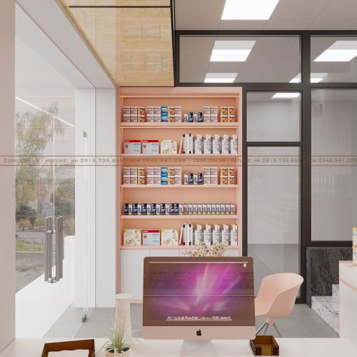 Phòng khám và cửa tiệm mẹ và bé Baby home được phân chia bởi hệ vách cửa kính nhôm Việt Pháp. Lối thiết kế mở này không chỉ mang đến sự riêng tư mà việc sử dụng hệ cửa kính cũng giúp tạo chiều sâu cho không gian, mang đến sự thoáng rộng, thoải mái, khắc phục được những hạn chế về mặt bằng nhỏ hẹp. Ý tưởng sáng tạo này cũng được chủ đầu tư dự án vô cùng hài lòng và dành những lời khen ngợi cho các kiến trúc sư PenViet.