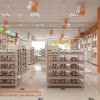 Kệ giày dép được bố trí tại khu vực cuối cửa hàng, tạo không gian mua sắm tiện ích, tính thẩm mỹ trong mẫu thiết kế shop mẹ và bé Chang Kids.