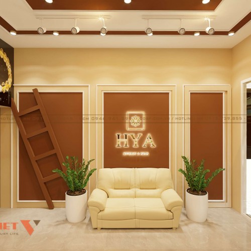 Không gian nội thất của shop phong thủy HYA mang đậm phong cách hiện đại và sang trọng. Sự kết hợp hài hòa giữa các yếu tố màu sắc, ánh sáng và bố trí nội thất, tạo nên không gian kinh doanh ấm cúng và chuyên nghiệp.