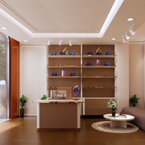 Hệ tủ kệ chính là linh hồn của một cửa hàng đá phong thủy. Tại thiết kế shop đá phong thủy Tĩnh Hỏa, từng chi tiết được cân nhắc kỹ lưỡng để vừa tối ưu trưng bày, vừa đảm bảo dòng chảy năng lượng phong thủy trong không gian.