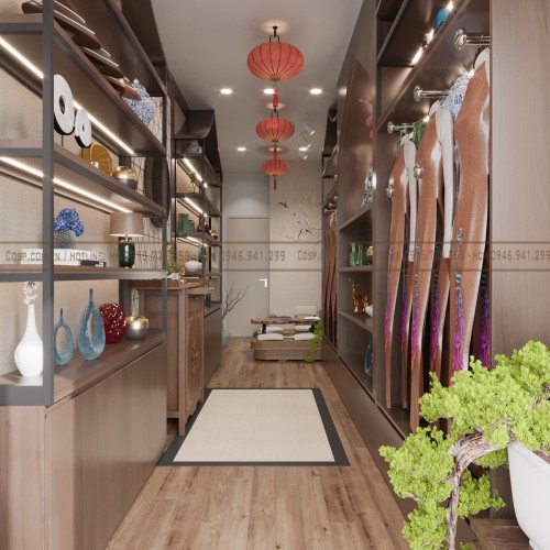 Dựa theo mong muốn của chủ đầu tư shop phong thủy - Chị Hằng mà đội ngũ nhân viên của nội thất PenViet đưa ra ý tưởng thiết kế cửa hàng theo phong cách hiện đại, sang trọng. Trong đó, phương án thi công cần giải quyết vấn đề hạn chế về diện tích mà vẫn đảm bảo công năng sử dụng, tính thẩm mỹ.