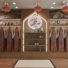 Đối diện bàn thờ Phật là dãy kệ tủ trưng bày y phục Phật giáo theo phong cách thiết kế mới. Với hệ thống đèn led bố trí hài hòa giúp làm nổi bật thêm vẻ đẹp cho các mẫu trang phục được trưng bày.