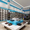 … khung và hậu bằng gỗ MDF, kính ốp mặt tủ dưới cho kệ giày trượt, khung gỗ MDF chống ẩm kết hợp với khay Mica đựng sản phẩm với kệ giày dép thể thao.