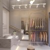 Với thiết kế treo móc quần áo sang 2 bên giúp mở rộng không gian. Một trong số những sự lựa chọn thông minh trong thiết kế shop thời trang chị Chi đó là màu sắc. Với tông màu sáng, màu be tạo cảm giác sang và hiện đại.