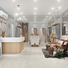 Khu vực quầy lễ tân và tiếp đón khách hàng được bố trí ở giữa cửa hàng giúp nhân viên bao quát toàn bộ không gian, cũng như tạo sự thoải mái, tiện lợi cho khách hàng.