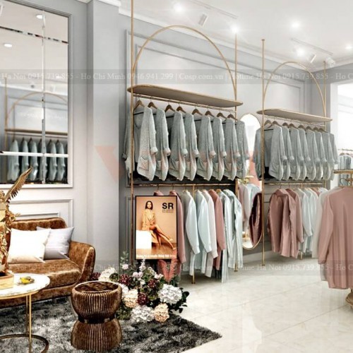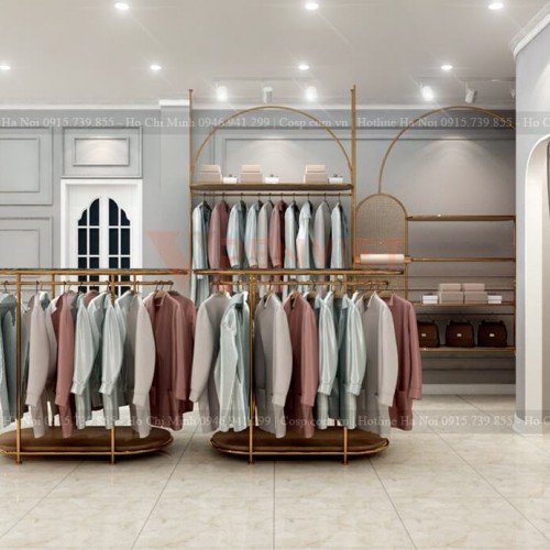 Thay vì những tủ trưng bày với hậu, vách ngăn truyền thống, chúng tôi chọn những mẫu thiết kế giá kệ đơn giản được thiết kế tinh tế, có khả năng chịu lực tốt và bỏ đi những vách, hậu. Điều này giúp cho ánh sáng chiếu đến sản phẩm tốt hơn, khiến những bộ cánh càng thêm cuốn hút. Ngoài ra, nó cũng cho phép chúng ta trưng bày thêm được nhiều mặt hàng hơn.