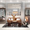 Nhằm nhấn mạnh sự sang trọng, kiêu kỳ trong thiết kế shop thời trang Ngọc Anh Boutique, Nội thất Penviet sử dụng mẫu sofa đệm mút bọc nỉ cùng với cá đôn ngồi khung gỗ bọc nỉ và bàn trà khung inox mạ vàng, mặt đá Marble nhân tạo màu trắng. Điểm nhấn trong thiết kế này vừa làm toát lên sự sang chảnh, đẳng cấp của cửa tiệm, vừa mang đến sự thoải mái, dễ chịu cho người sử dụng.