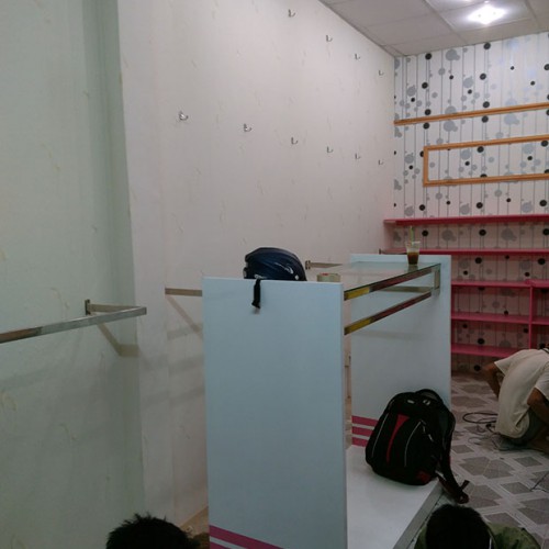 Biết được điều đó, Nội thất Cosp đã tới khảo sát thực tế và cùng thảo luận, tư vấn cho chị để đưa ra được biện pháp tốt nhất. Cosp đã tận dụng chính khoảng tường trống trong cửa hàng, đóng những giá đỡ lên tường, vừa có thể để sản phẩm vừa giúp tiết kiệm diện tích.