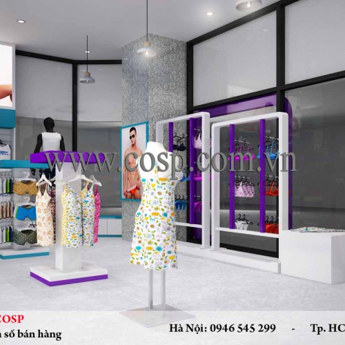 Một dự án thiết kế shop thời trang bikini với nhiều điểm độc đáo từ màu sắc với kiểu dáng các loại kệ trưng bày đã tạo nên nét nổi bật riêng cho cửa hàng của anh Long. Dưới sự thiết kế của KTS Hà đã mang đến một không gian hiện đại, trẻ trung, thể hiện được sự chuyên nghiệp của cửa hàng.