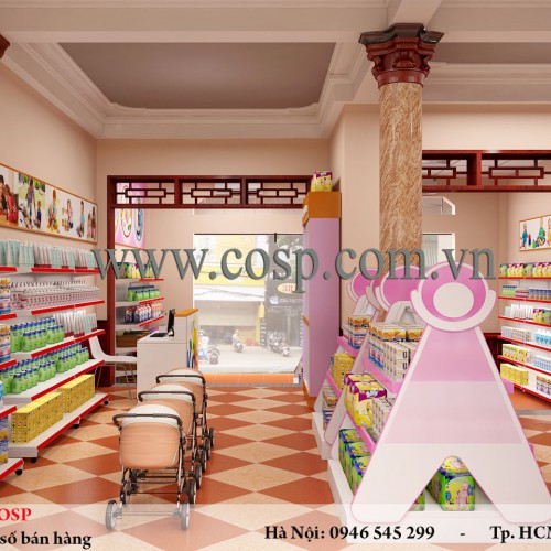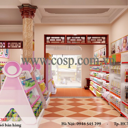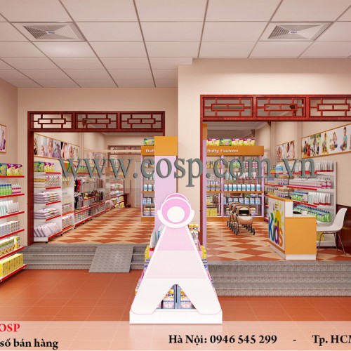 Thiết kế cửa hàng đồ sơ sinh mẹ và bé - cô Xuân