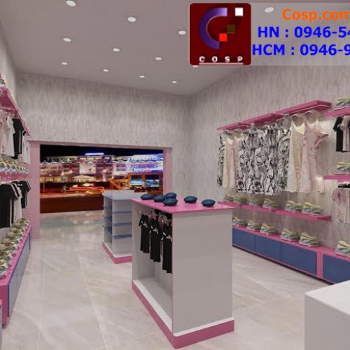 Shop sẽ có một không gian đáng yêu, trẻ trung và thu hút trẻ nhỏ với những màu sắc được phối hợp hài hòa, bắt mắt. Cách bố trí cửa hàng đơn giản nhưng tiện lợi và phù hợp góp phần tạo nên một thiết kế cửa hàng thời trang khoa học và hiện đại.
