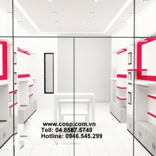 Để tạo ấn tượng tốt cũng như mang đến một không gian bày bán hàng hóa đẹp mắt, chúng tôi đã kết hợp giữa hai gam màu trắng và đỏ tươi khi thiết kế cửa hàng thời trang công sở nữ này. Màu trắng giúp mang đến vẻ đẹp tao nhã, hiện đại mà lại tạo cảm giác rộng rãi cho không gian trưng bày. Còn màu đỏ sẽ tạo điểm nhấn nhá, thu hút sự chú ý của người nhìn tốt hơn cũng như cân bằng lại màu sắc cho không gian.