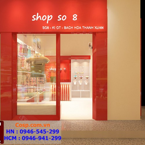 Mặt tiền của cửa hàng sử dụng sắc đỏ và trắng là chủ đạo gây ấn tượng mạnh, tạo được thị giác tốt cho khách hàng ngay khi mới đi qua.