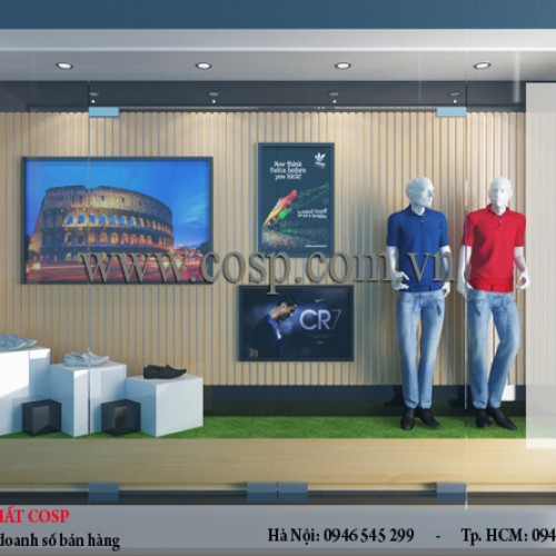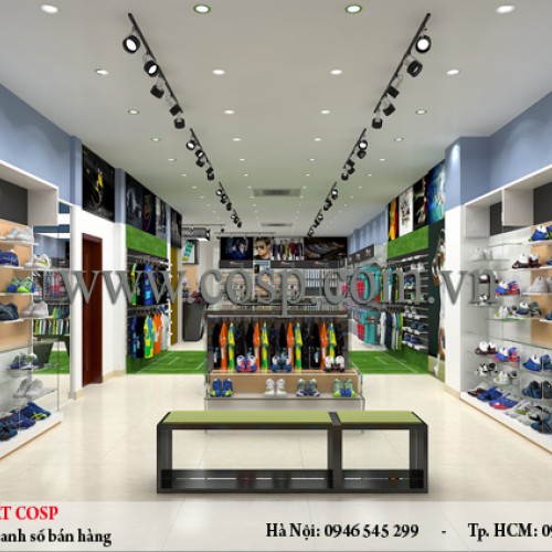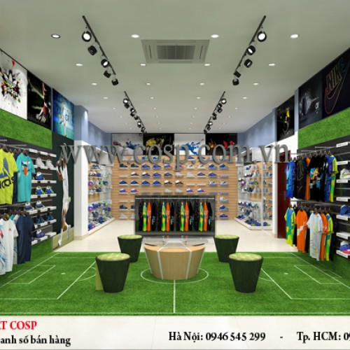 Thiết kế shop thời trang nam được thiết kế từ ý tưởng về bóng đá đem tới một cửa hàng thời trang nam rất trẻ trung, năng động và phong cách.