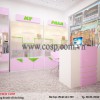 Quầy thu ngân được bố trí gọn gàng ở ngay gần cửa vào với màu sắc sử dụng là trắng và hồng nhạt tiệp màu với màu sắc nội thất của thiết kế shop thời trang trẻ em. Màu hồng nhạt giúp tạo một không gian đáng yêu kinh doanh các sản phẩm dành cho trẻ nhỏ nhưng không quá sắc sỡ để không gian nội thất cửa hàng vẫn có được sự thanh lịch và trang nhã.
