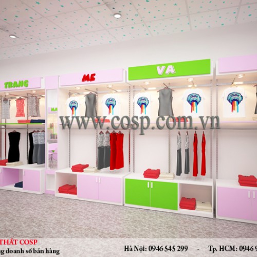 Trên đây là những hình ảnh về shop thời trang trẻ em được Nội thất Cosp thực hiện thiết kế cho anh Nhật ở Đồng Tháp. Hy vọng với những thông tin này sẽ giúp các bạn có thêm các ý tưởng hay để thiết kế shop thời trang của mình nhé.