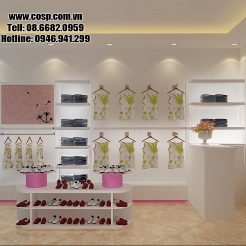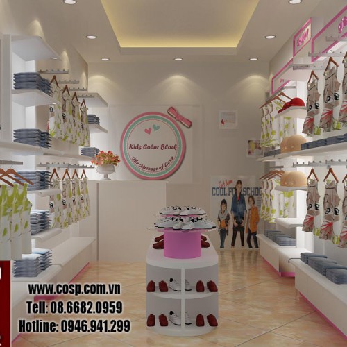 Với diện tích hơi nhỏ, chỉ hơn 10m2 nhưng với mong muốn tối đa hóa khả năng trưng bày các sản phẩm thời trang dành cho bé, công ty đã lên phương án thiết kế shop phù hợp với tính chất của cửa hàng.