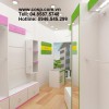 Khi thiết kế shop thời trang trẻ em, điều quan trọng là phải thể hiện được sự dễ thương, nhí nhảnh để phù hợp với đối tượng khách hàng là những vị "thượng đế nhí". Do đó, khi tiếp nhận yêu cầu thiết kế của chị Mai cho shop thời trang Mèo Tom, kiến trúc sư của Cosp đã lựa chọn hai gam màu là hồng và xanh lá để thiết kế nội thất.
