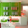 Màu sắc chủ đạo được sử dụng trong thiết kế shop thời trang trẻ em này là xanh lá của tường và trắng của các nội thất kệ giá trưng bày nhằm đem đến một không gian tươi vui, phù hợp với các bạn nhỏ.