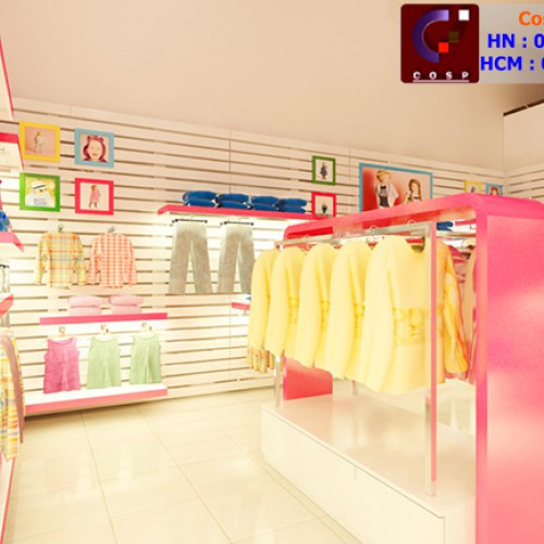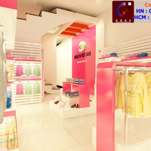 Ý tưởng: Cửa hàng thời trang Việt Nam xuất khẩu được thiết kế theo phong cách trẻ trung, hiện đại. Cửa hàng sử dụng những màu sắc bắt mắt, thu hút khách hàng ngay từ cái nhìn đầu tiên.