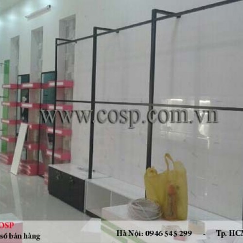 Theo nguyên tắc thiết kế nội thất shop thì các vách ngăn sẽ tạo ra sự phân chia, khiến không gian nội thất bị chi nhỏ từ đó đem tới cảm giác không gian bị thi hẹp. Do đó, để không gina cửa hàng trở nên thông thoáng, rộng rãi, các tủ trưng bày sử dụng các khung sắt, mà hạn chế cách vách ngăn bằng gỗ.