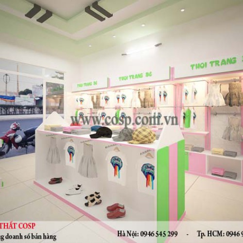Trên đây là những hình ảnh thiết kế và thi công cho shop Baby dành cho mẹ và bé ở Bình Thuận. Hy vọng sau khi xem xong bài viết này các bạn sẽ có những ý tưởng hay để thiết kế cho shop thời trang mẹ và bé của riêng mình. Nếu bạn cần tìm một đơn vị thiết kế cửa hàng uy tín và chuyên nghiệp, hãy liên hệ với Nội thất Cosp để được hỗ trợ và nhận mức báo giá vô cùng ưu đãi nhé.