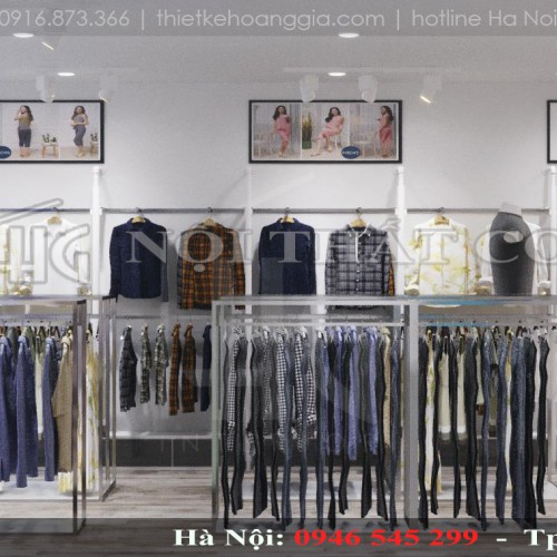 Ngay chính giữa không gian, hệ giá treo được làm từ chất liệu inox được kê thẳng hàng nhằm ngăn cách thành hai lối đi, cùng với đó bố cục của shop thời trang trở nên logic và hợp lý hơn. Nội thất trang trí chúng tôi đem tới bao gồm tranh ảnh backlit giúp không gian trở nên phong phú và đa dạng hơn.