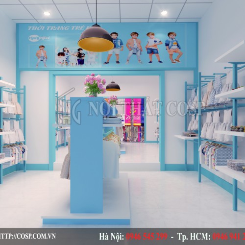 Đến với công ty nội thất Cosp, chị Cúc mong muốn có cho mình một không gian nội thất shop thời trang trẻ em với gam màu tươi sáng và đáng yêu, phù hợp với lứa tuổi các bé. Hơn nữa, hệ thống nội thất cần phải đảm bảo an toàn và yêu cầu về mặt thẩm mỹ nắm bắt được những yêu cầu đó, KTS Cosp với nhiều năm kinh nghiệm thiết kế shop và thi công shop nội thất.