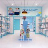 Chính giữa không gian là hệ kệ trưng bày sản phẩm được làm từ chất liệu gỗ MDF phủ sơn có độ bền cao, chống cong vênh mối mọt và đảm bảo an toàn tuyệt đối với không gian dành cho trẻ.
