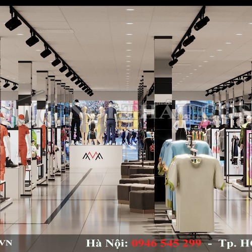 Với dự án lần này với lợi thế diện tích mặt bằng rộng rãi, chúng tôi tập trung vào thiết kế nội thất và trang trí sao cho hài hòa và đẹp mắt, toát lên sự sang trọng và đẳng cấp cho shop thời trang lớn.