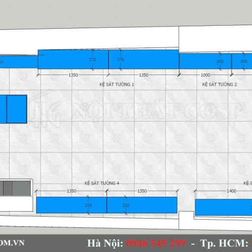 Bản vẽ chi tiết của gian hàng được thực hiện bởi KTS Nội Thất Hoàng Gia