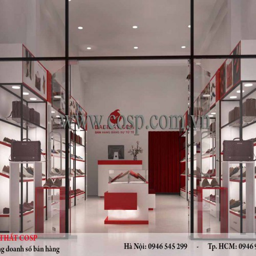 Với tông màu chủ đạo là màu đỏ, chúng tôi thiết kế toàn bộ nội thất của cửa hàng với gam màu trắng kết hợp với nó để tạo sự đồng nhất cho chuỗi cửa hàng. Hiệu ứng màu sắc mang lại nét đẹp tinh tế và sang trọng làm nổi bật cho không gian kinh doanh bên trong cửa hàng và làm nổi bật cho các sản phẩm đang trưng bày.