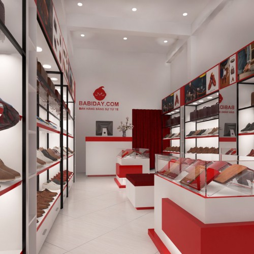 Thương hiệu Babiday là một chuỗi cửa hàng giày dép thời trang uy tín và có mặt ở nhiều tỉnh thành. Chính vì vậy KTS đã thiết kế mặt tiền cửa tiệm theo đúng concept thương hiệu với gam màu nổi bật là màu đỏ.